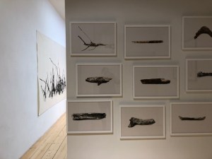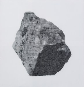 Marion Bösen und Susanne Katharina Willand umkreisen ähnliche Themen. Sie rastern und pixeln, setzen daraus ihre Bilder zusammen, auf Stoff oder Papier. Je näher man dem Motiv kommt, desto mehr löst es sich auf und verweigert die Aussage, stattdessen treten die Bildpunkte oder -linien in Erscheinung. In einem Wechselspiel von Nah- und Fernsicht handeln die Bilder von Steinen und Pflanzen und Tieren, es sind schlichte Stillleben. Was bleibt ist der langsame Blick, die Beiläufigkeit ist in Szene gesetzt.