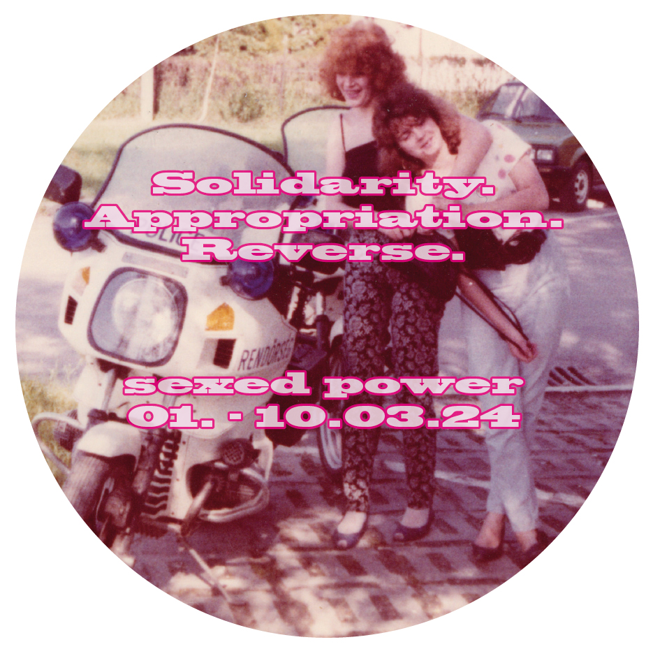 is a project in the series „Sexed Power | Art in the Context of Sexualized Power“. The exhibition first took place at MOM art space in 2018 and has since been repeated on International Women’s Day. This year, the focus is on artistic negotiations of the three concepts of Solidarity, Appropriation and Reverse and their significance for feminist* demands and struggles.