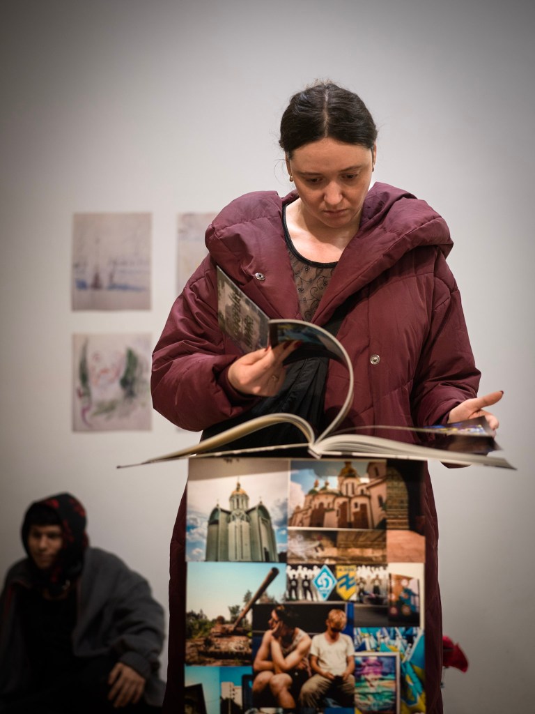 Mit: Alisa Zizykh (UKR), Paula Lytovchenko (UKR), Liu Ding (CN), Rachel Perry Akabi (ISR), Peter Boué (DE), Ksenia Hnylytska (UKR), Schüler:innen der Schule 14 von FS Gruschewskij Kyiv (UKR), Delmar Mavignier (DE), Yuliia Darmenko (UKR) und Yevheniia Symonenko (UKR)