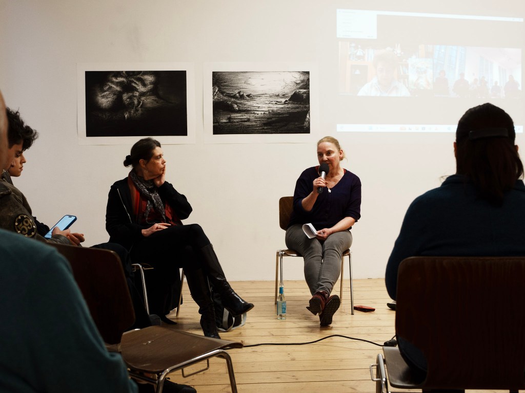 mit: Dr. Belinda Grace Gardner (Kunstwissenschaftlerin, DE), Nataliia Lipina ( Stv. Direktorin in Fremdsprachen, Kiev, UKR), Dr. Martin Karcher (Assistenzkurator, Kunstverein Hamburg, DE ) und Dagmar Rauwald (Künstler-Kuratorin, DE)