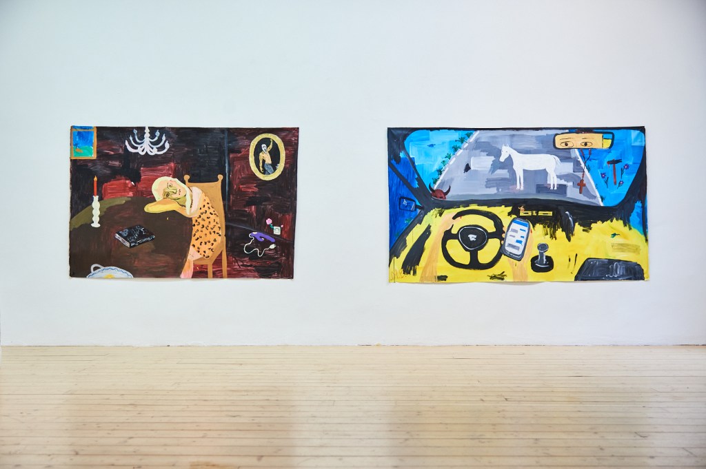 The exhibition May Shatter Without Warning / Különösebb előjel nélkül összetörhet / Kann ohne Vorwarnung zerbrechen opens an art dialogue between the paintings of Budapest-based intermedia artist Barbara Mihályi and works by Hamburg-based artist Anna Grath.