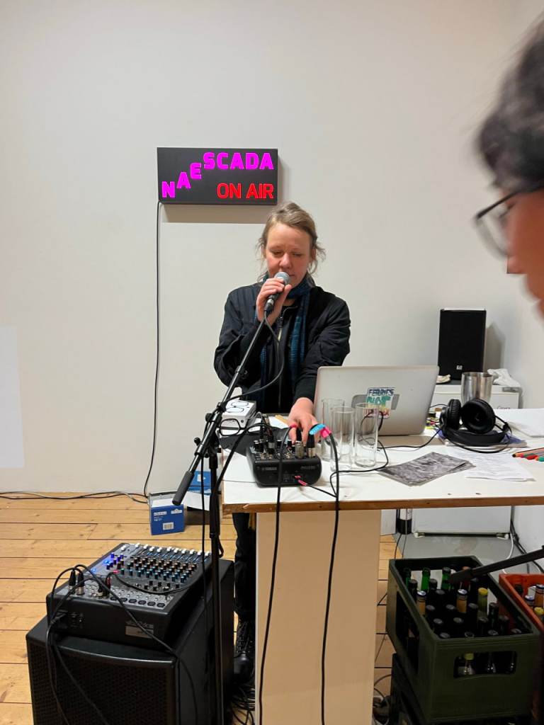 NA ESCADA ist ein Künstler*innen Projekt das versucht mit Hörsituationen im Ausstellungsraum von einem kollektiv organisierten Ausstellungsraum zu erzählen.